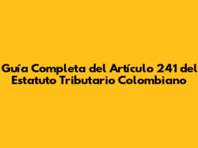Guía Completa Del Artículo 241 Del Estatuto Tributario Colombiano