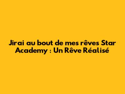 J'irai Au Bout De Mes Rêves Star Academy : Un Rêve